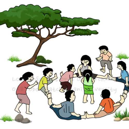 | คำอธิบาย : การเต้นข่วมขา หรือกระโดดข้ามขา การเล่นกลางแจ้งของเด็กอีสาน |