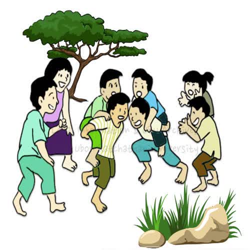 | คำอธิบาย : การเล่นขี่ม้าชิงเมือง การเล่นกลางแจ้งของเด็กอีสาน |