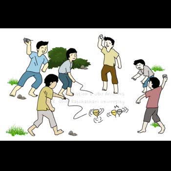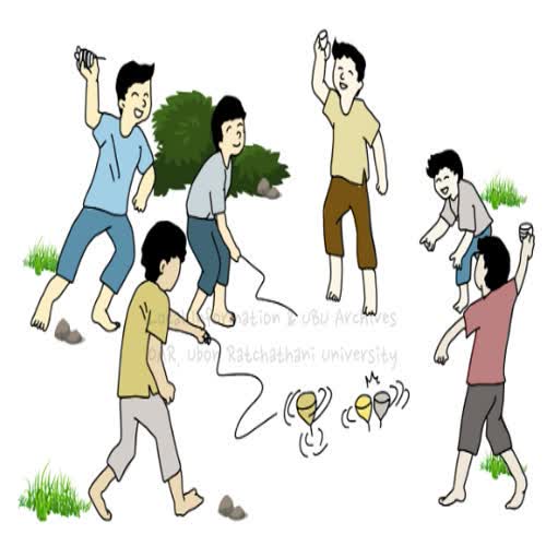 | คำอธิบาย : การเล่นหมากข่างหรือลูกข่าง การเล่นกลางแจ้งของเด็กอีสาน |