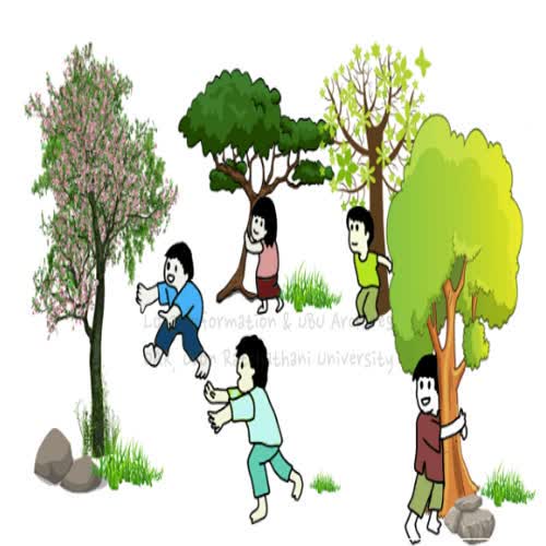 คำอธิบาย : การเล่นลิงชิงหลัก การเล่นกลางแจ้งของเด็กอีสาน |