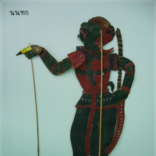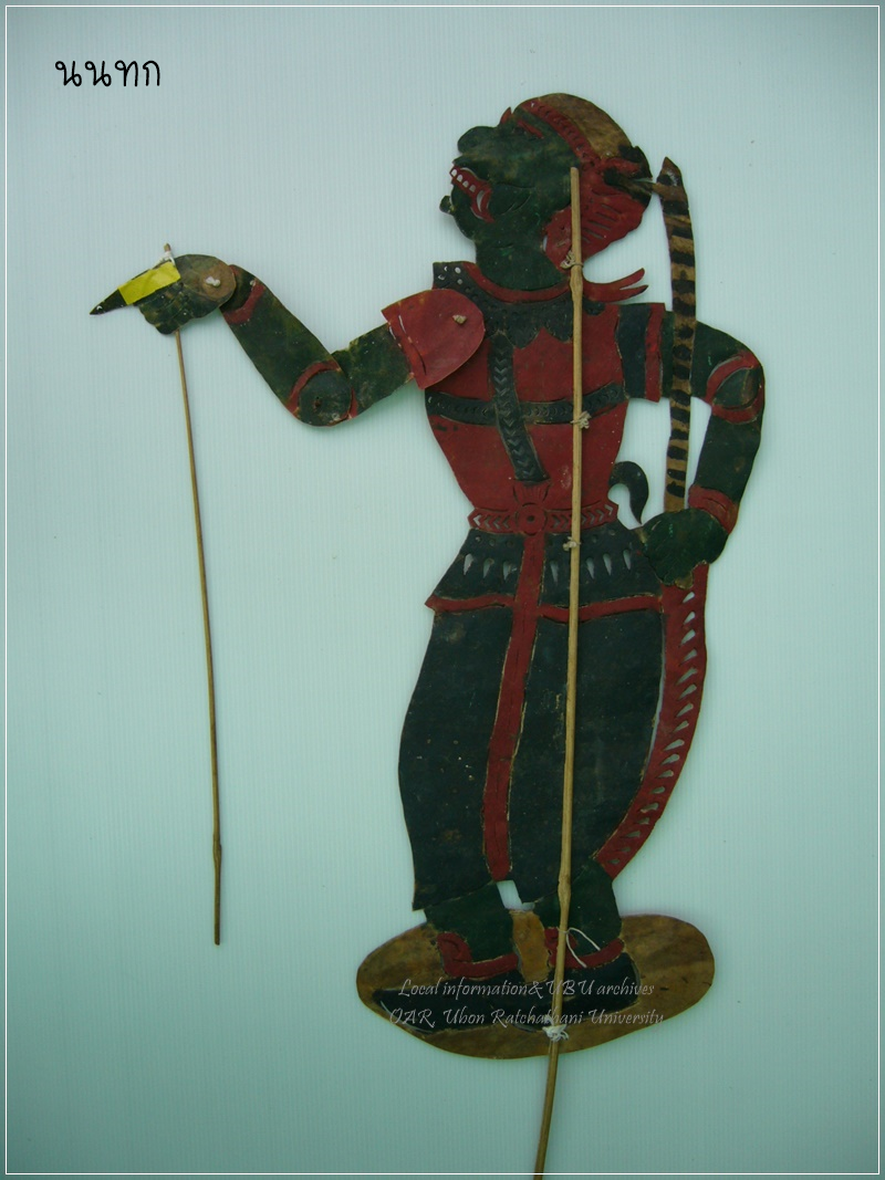 คำอธิบาย : หนังรูปนนทก ใช้ในการแสดงหนังประโมทัย หนังบักตื้อ หรือหนังตะลุงอีสาน การละเล่นพื้นเมืองในภาคอีสาน เรื่องรามเกียรติ์ |