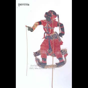 | คำอธิบาย : หนังรูปกุมภกรรณใช้ในการแสดงหนังประโมทัย หนังบักตื้อ หรือหนังตะลุงอีสาน การละเล่นพื้นเมืองในภาคอีสาน เรื่องรามเกียรติ์ |