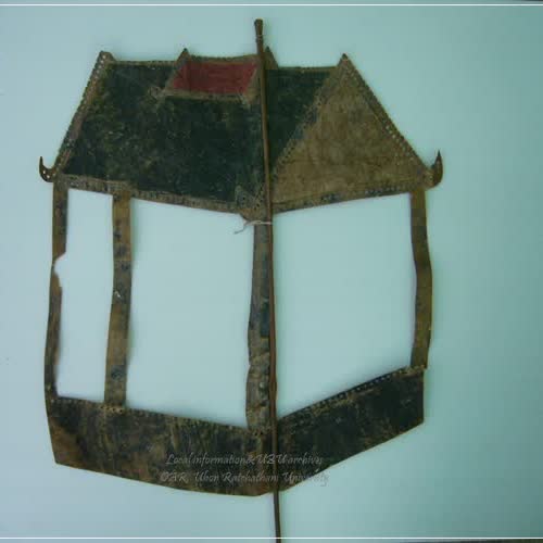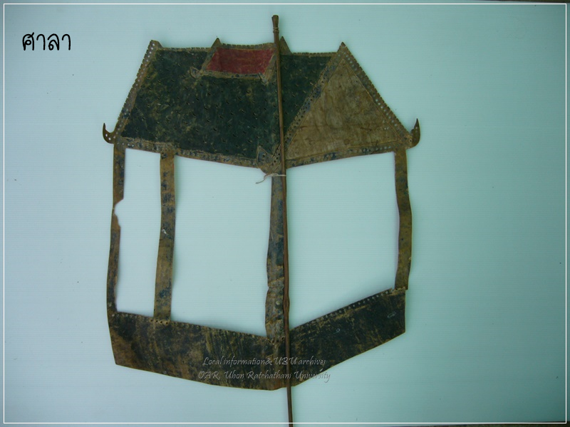 | คำอธิบาย : หนังรูปศาลา ใช้ประกอบฉากในการแสดงหนังประโมทัย หนังบักตื้อ หรือหนังตะลุงอีสาน การละเล่นพื้นเมืองในภาคอีสาน |