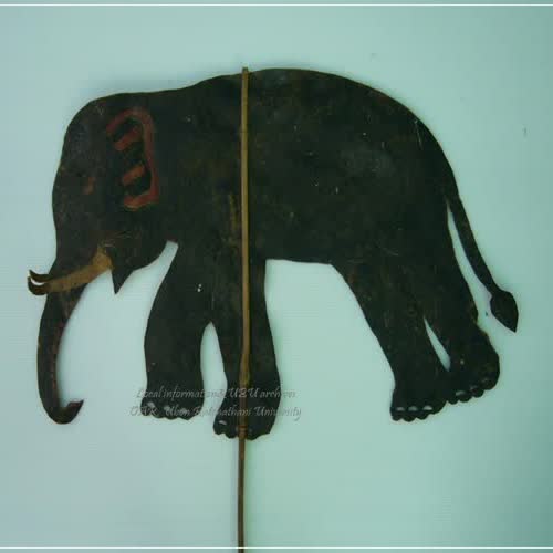 | คำอธิบาย : หนังรูปช้างใช้ประกอบฉากในการแสดงหนังประโมทัย หนังบักตื้อ หรือหนังตะลุงอีสาน การละเล่นพื้นเมืองในภาคอีสาน |