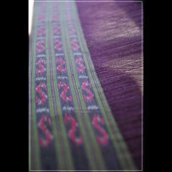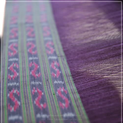 คำอธิบาย : ผ้าไหมลายขอ-หมี่คั่น ลวดลายผ้าไหมพื้นบ้านของบ้านสมพรรัตน์ ตำบลหนองสะโน อำเภอบุณฑริก จังหวัดอุบลราชธานี |