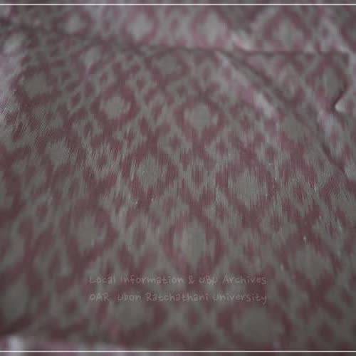 | คำอธิบาย : ลวดลายผ้าไหมพื้นบ้านของบ้านสมพรรัตน์ ตำบลหนองสะโน อำเภอบุณฑริก จังหวัดอุบลราชธานี ประกอบด้วยลายหมากจับเจ็ดและลายหมากจับห้า |