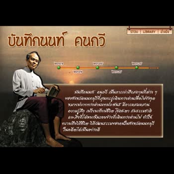 | คำสำคัญ : สุนทรภู่, นวัตกรรมบรรณสาร, นิทรรศการออนไลน์, นิราศนนทบุรี, ข้อมูลท้องถิ่นนนทบุรี |