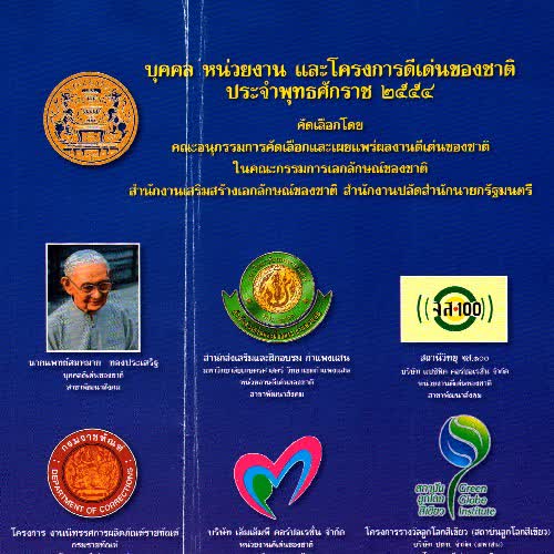 "แผ่นพับบุคคล หน่วยงาน และโครงการดี่เด่นของชาติ ประจำพุทธศักราช ๒๕๕๔".