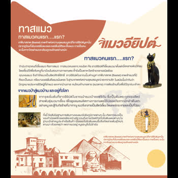 | คำอธิบาย : แมวเป็นสัตว์ที่มีความผูกพันใกล้ชิดกับมนุษย์มายาวนาน ประเทศอียิปต์นับเป็นประเทศแรกๆ ที่มีการเลี้ยงแมวตั้งแต่เมื่อหลายพันปีก่อน โดยเลี้ยงไว้เพื่อจับหนูที่เข้ามาป่วนในสวนการเกษตร ข้อความจากบอร์ดนิทรรศการในงาน Night at the Museum ครั้งที่ 10 รวมพลคนหลงแมว ระหว่างวันที่ 18-20 ธันวาคม 2563 ณ มิวเซียมสยาม |