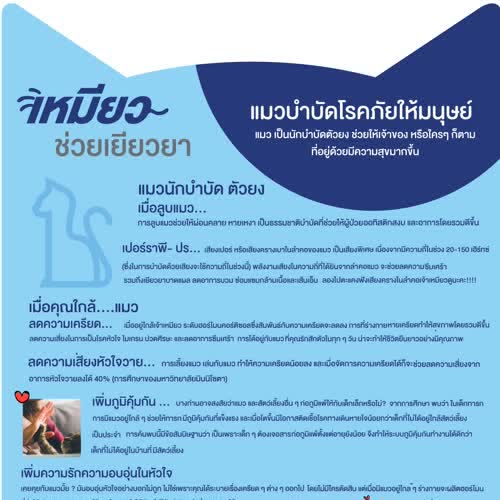 | คำสำคัญ : แมวบำบัด, แมว, มิวเซียมสยาม, เพิ่มภูมิคุ้มกัน, วัฒนธรรม, ลดความเครียด, อินโฟกราฟฟิค, ความเชื่อ, เกร็ดความรู้, ออทิสติก |