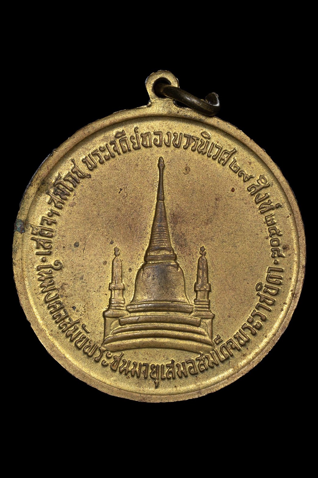 | คำอธิบาย : ชื่อภาพ : เหรียญ ทรงผนวช ในหลวง รัชกาลที่ 9ข้อมูลประกอบภาพ The Team 1990จัดทำร่วม เพจ วัตถุมงคล เเละ ของเก่าสะสมที่ระลึกต่างๆ Long Live The Kingคงกฤช วงศ์สละ"ประวัติ"วันที่ 29 สิงหาคม 2508 พระบาทสมเด็จพระเจ้าอยู่หัว ทรงพระกรุณาโปรดเกล้าฯ ให้จัดงานพระราชพิธีทรงบำเพ็ญพระราชกุศล พระชนมพรรษาเสมอสมเด็จพระมหิตลาธิเบศรอดุลยเดชวิกรม พระบรมราชชนก โดยทรงปฏิบัติพระราชกรณียกิจในการกุศล 4 อย่าง อันเรียกว่า "จาตุรงคมงคล"ในการนี้ วัดบวรนิเวศวิหาร ขอพระราชทานพระบรมราชานุญาตจัดสร้าง "เหรียญพระบรมรูปทรงผนวช" และนำเข้าพิธีพุทธาภิเษกพร้อมกับ "พระพุทธรูป ภ.ป.ร." เมื่อวันที่ 27 สิงหาคม 2508ตามบันทึกของวัดบวรนิเวศฯ" วัดบวรนิเวศวิหาร ได้ขอพระบรมราชานุญาตสร้างเหรียญพระบรมรูปทรงผนวช ซึ่งมีพระเจดีย์อยู่อีกด้านหนึ่ง เพื่อเป็นอนุสรณ์ในงานจาตุรงคมงคลครั้งนี้ เหรียญที่สร้างชิ้นนี้มีรูปกลมขนาดเหรียญบาท ด้านที่มีพระบรมรูปทรงผนวชมีพระปรมาภิไธย ซึ่งเป็นลายพระราชหัตถเลขาทรงไว้ในสมุดทะเบียนวัดว่า "ภูมิพลอดุลยเดช ป.ร. ภูมิพโล" อยู่ภายใต้พระบรมรูป เบื้องบนมีอักษรว่า "ทรงผนวช ๒๔๙๙" ส่วนอีกด้านหนึ่งมีรูปพระเจดีย์วัดบวรนิเวศฯ มีอักษรเป็นวงกลมล้อมรอบเหรียญว่า "เสด็จฯ สมโภชพระเจดีย์ทองบวรนิเวศ ในมงคลสมัยพระชนมายุเสมอสมเด็จพระราชบิดา ๒๙ สิงห์ ๒๕๐๘" และเหรียญทั้งหมดก็ได้นำเข้าในพิธีพุทธาภิเษกในวันที่ 27 สิงหาคม พ.ศ.2508 ด้วย"ตามที่วัดบวรนิเวศฯ ได้ขอพระราชทานพระบรมราชานุญาตจัดสร้างเหรียญพระบรมรูปทรงผนวช ดังได้ยกบันทึกของวัดบวรฯ มาอ้างอิง มีกำหนดการประกอบพิธีเป็นเวลา 3 วัน เริ่มตั้งแต่วันที่ 27-29 สิงหาคม 2508พระราชพิธีพุทธาภิเษกหล่อพระพุทธรูปปางประทานพร ภ.ป.ร. และพระกริ่ง ภ.ป.ร. ณ วัดบวรนิเวศวิหาร ระหว่างวันที่ 27-29 สิงหาคม 2508 ดังกล่าว คือ การพุทธาภิเษกวัตถุมงคลดังกล่าว คือ พระพุทธรูปปางประทานพร ภ.ป.ร. และพระกริ่ง ภ.ป.ร. ทั้งหมด ด้วยวิธีการหล่อนำฤกษ์ชนวนโลหะแล้วนำไปสร้างด้วยกรรมวิธีปั๊ม พร้อมสร้างเหรียญพระบรมรูปทรงผนวช และนำมาเข้าพิธีดังกล่าวครบทั้ง 3 วัน#ทั้งนี้พระบาทสมเด็จพระเจ้าอยู่หัว ทรงมีพระมหากรุณาธิคุณโปรดเกล้าฯ เสด็จฯ ทรงประกอบพิธี ในวันที่ 27-29 สิงหาคม 2508ด้านหน้าเหรียญ ตรงกลางเหรียญเป็นพระบรมรูปพระบาทสมเด็จพระเจ้าอยู่หัวทรงผนวช นั่งขัดสมาธิ ด้านบนพระบรมรูป เขียนคำว่า "ทรงผนวช ๒๔๙๙"ด้านหลังเหรียญ ตรงกลางเหรียญเป็นรูปพระมหาเจดีย์วัดบวรนิเวศวิหาร ขอบเหรียญด้านบน เขียนคำว่า "เสด็จฯ สมโภชพระเจดีย์ทองวัดบวรนิเวศ ๒๙ สิงห์ ๒๕๐๘" ขอบเหรียญด้านล่าง เขีย