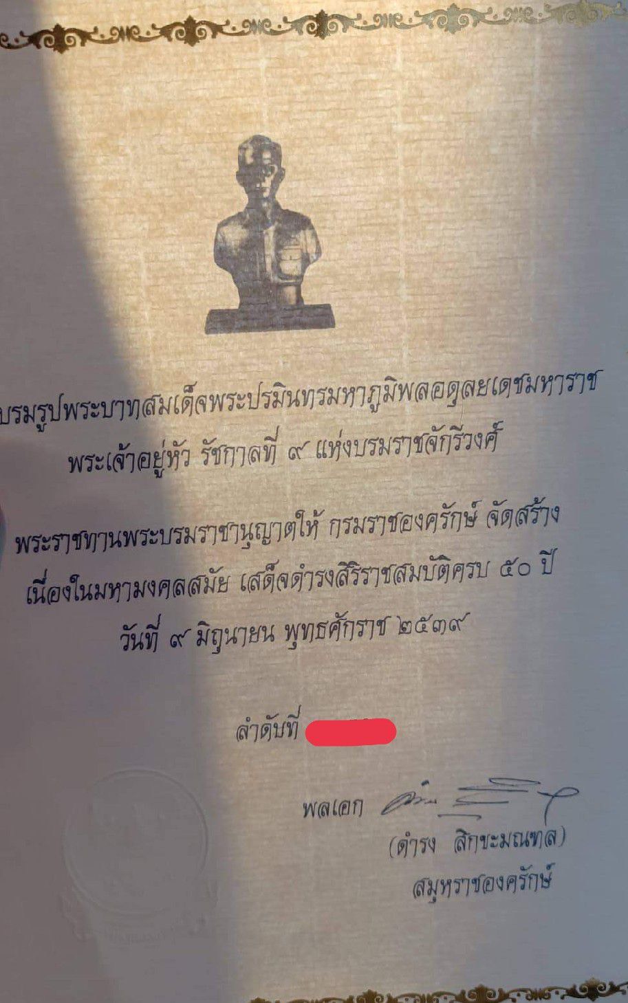 (2564). "พระบรมรูปสาทิสลักษณ์ครึ่งพระองค์ พระบาทสุมเด็พระเจ้าอยู่หัวรัชกาลที่ 9 รุ่น 2 ปี 2541".