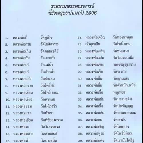 | คำอธิบาย : ชื่อภาพ : พระเครื่อง วัดประสาทฯ ปี พ.ศ. 2506ภาพถ่าย ข้อมูลประกอบภาพ เพจ สุขนิยม แกลเลอรีผลงานร่วม The Team 1990 โมฬี บุญเจนวรกิจกล่าวกันว่า พระเครื่องของวัดประสาทฯปี2506 มีส่วนผสมของสมเด็จวัดบางขุนพรหมเป็นจำนวนมาก ซึ่งนับว่าเป็นพิธีใหญ่มากๆ คณาจารย์ที่ดังและมีชีวิตอยู่ในยุคนั้นมากันร้อยกว่ารูป ถึงขนาดที่ว่าไม่มีที่นั่งในอุโบสถต้องโยงสายสิญณ์มานอกโบสถ์แล้วนั่งปลุกเศกกันเลย พระดี เจตนาดี มวลสารยอดเยี่ยม พิธีครบถ้วน พระผงพิมพ์จันทร์ลอย วัดประสาทบุญญาวาส ปี 2506 เป็นพระที่เรียกว่าของดี ราคาเยาวชนก็ว่าได้ พระครูสมุห์อำพล เจ้าอาวาส ได้รวบรวมมวลสาร ผงวิเศษต่างๆ ว่านนานาชนิดรวมทั้งแร่ศักดิ์สิทธิ์นำมาผสมจัดสร้างพระและในการนี้ได้นิมนต์พระเกจิอาจารย์ 127 รูปมาร่วมพิธีมหาพุทธาภิเษกเรียกได้ว่ายิ่งใหญ่มากเป็นประวัติการณ์ เรียกได้ว่าพระเกจิที่มีชื่อเสียงและโด่งดังในสมัยนั้นได้รับการนิมนต์มาทั้งนั้นพุทธาภิเษก 3 วัน 3 คืน เมื่อวันที่ 13-14-15 พย. 2506 และในวันที่ 16 พย. 2506 เวลา 5 โมงเย็น อาราธนา พระคณาจารย์ 108 รูป ร่วมมหาพุทธาภิเษก พระเกจิอาจารย์ที่เรืองเวทย์ด้านคาถาอาคมมาร่วมพิธีปลุกเสกมากกว่า 108 รูป อาทิ เช่น- อาจารย์ทิม วัดช้างไห้ - หลวงปู่ทิม วัดระหารไร่ - หลวงพ่อน้อย วัดธรรมศาลา - หลวงปู่โต๊ะ วัดประดู่ฉิมพลี - หลวงปู่นาค วัดระฆัง - หลวงพ่อเงิน วัดดอนยายหอม - หลวงพ่อกวย วัดโฆสิตาราม - หลวงปู่ดู่ วัดสะแก - หลวงพ่อแทน วัดธรรมเสน - หลวงพ่อทบ วัดชนแดน - หลวงพ่อจง วัดหน้าต่างนอก - หลวงพ่อสุด วัดกาหลง - หลวงพ่อคง วัดวังสรรพรส - หลวงพ่อจวน วัดหนองสุ่ม- หลวงปู่สี วัดสะแก - หลวงปู่บุดดา วัดกลางชูศรี - หลวงพ่อแก้ว วัดช่องลม - หลวงปู่ธูป วัดแคนางเลิ้ง - หลวงพ่อทองอยู่ วัดใหม่หนองพะองค์ -หลวงพ่ออั้น วัดพระญาติ - หลวงพ่อแพ วัดพิกุลทอง - หลวงพ่อเต๋ คงทอง วัดสามง่าม - หลวงพ่อหวล วัดพิกุล - เจ้าคุณผล วัดหนัง - หลวงพ่อนอ วัดกลางท่าเรือ - หลวงพ่อถิร วัดป่าเลไลย์ - หลวงพ่อมุย วัดดอนไร่ - หลวงพ่อกี๋ วัดหูช้าง - หลวงพ่อเส่ง วัดกัลยานิมิตร - หลวงพ่อฑูรย์ วัดโพธิ์นิมิตร และคณาจารย์ชื่อดังอีกมากมายกว่า 100 รูปพระวัดประสาทฯสร้างออกมา 3 รุ่นด้วยกันระหว่างปี 2506-2508 โดยพระสมุห์อำพล เจ้าอาวาสวัดใหม่อมตรส และอาจารย์ทิม วัดช้างไห้ ปลุกเสกครั้งแรก มีพระคณาจารย์มาร่วม 156 องค์ ครั้งที่สอง มีพระคณาจารย์ มาร่วม 234 รูป , ครั้งที่สาม มีพระคณาจารย์ มาร่วม 191 รูปประกอบกับความดีเด่น อีก 3 ประการ คือ1.เจตนาในการสร้างดี ผู้สร้างมีเจตนาที่จะสร้างพระเครื่องเพื่อบรรจุในองค์พระเจดีย์เพื่อสืบสารพระพ