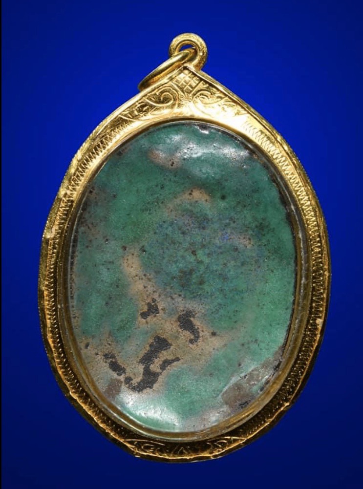 ล็อคเก็ตนั่งสมาธิหลวงปู่โต๊ะ วัดประดู่ฉิมพลีเต็มองค์ฉากฟ้าหน้าลายเซ็นต์ หลังเปลือยปี พ.ศ. 2521