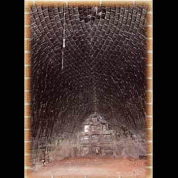 | คำอธิบาย : การก่อหลังเตาหรือเพดานเตา ค่อนข้างยากและมีความสำคัญมาก ต้องใช้ช่างที่มีความชำนาญ ถึงจะก่อหลังเตาให้มีความแข็งแรง มั่นคงและสวยงาม ถ้าก่อไม่ดีจะยุบพังลงมา และต้องก่อให้หลังเตามีความโค้งคล้ายประทุนเรือ อิฐที่ใช้ก่อหลังเตาควรเป็นอิฐดิบจะเหมาะกว่าอิฐสุก เพราะสามารถถากและตกแต่งให้ได้รูปตามโค้งของหลังเตาได้ แต่หากช่างก่อเตาคนใดต้องการก่อหลังเตาด้วยอิฐสุก จะต้องปั้นอิฐให้ได้รูปตามที่ต้องการแล้วนำไปเผาเป็นอิฐสุก และเมื่อนำมาก่อเป็นหลังเตา ก็ต้องถากอิฐมาก การเรียงอิฐแต่ละแถวจะค่อย ๆ ลาดเอียงขึ้นสู่กลางหลังเตาตรงบริเวณแนวสันกลางหลังเตา อิฐต้องประกบกันเป็นรูปโ้ค้งมนไม่เป็นสันกลางหลังเตา การเรียงอิฐเช่นนี้ต้องใช้ความชำนาญมาก ถ้าเรียงอิฐไม่ดี สองด้านของหลังคาเตาจะประกบกันเป็นยอดของสามเหลี่ยม ตัวเตาจะแฟบ หลังเตาจะไม่โค้ง เตาไม่ป่อง ทำให้บรรจุเครื่องปั้นดินเผาได้น้อย และเตาจะมีความแข็งแรงน้อยกว่าเตาที่ก่อแล้วมีหลังเตาโค้งมนการเรียงอิฐแต่ละก้อนจะวางซ้อนกันตามความโค้ง อิฐแต่ละก้อนจะทำหน้าที่เป็นลิ่มสลักยึดหลังเตาด้วย อิฐก้อนสุดท้ายตรงกลางหลังเตาเมื่อวางลงแล้ว การอัดแน่นของอิฐส่วนหลังเตาจะถูกยึดตรึงแน่นตามหลักกลศาสตร์ ด้วยมีการกระจายการยึดตัวของอิฐทุกแผ่นให้แนบแน่นทั่วถึง กันตลอดหลังเตา การวางอิฐก้อนสุดท้ายช่างก่อเตาให้ความสำคัญมาก ต้องมีพิธีไหว้ครูก่อนจึงวางอิฐก้อนสุดท้ายนี้ได้ |