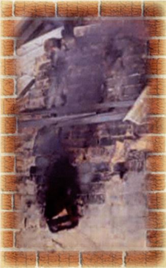 | คำอธิบาย : ปล่องไฟที่จะก่อยื่นจากท้ายเตาต่อจากส่วนที่จะทำเป็นประตูท้ายเตตา หน้าปล่องเตาไฟภายในเตา ก่ออิฐซ้อนเป็นรูปสี่เหลี่ยมจัตุรัส ขนาดของปล่องกว้างประมาณด้านละ 2 เมตร และสูงประมาณ 4 เมตรจากพื้นเตา ฐานของปล่องไฟก่ออิฐล้อมรอบฐานปล่องด้านนอกไว้อีกชั้นหนึ่ง เพื่อความแข็งแรงของปล่อง ตรงท้ายปล่องสูงขึ้นมาจากระดับพื้นติดกับส่วนที่เป็นฐานเตา ทำเป็นช่องสี่เหลี่ยมขนาด 25 x 25 เซนติเมตร เพื่อใช้เป็นที่ระบายความร้อน เนื่องจากความร้อนจะระบายออกทั้งที่ปล่องไฟและที่ช่องสี่เหลี่ยมนี้ |