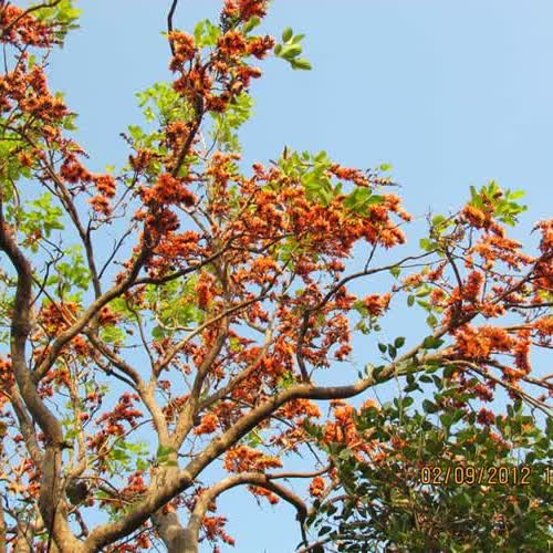 | คำอธิบาย : ทองกวาว คนอิสานเรียก ดอกจาน ดอกไม้หน้าแล้งมีมากทางเหนือและภาคตะวันออกเฉียงเหนือ หลังจากใบร่วงช่วงธค. มค-มี.คจะออกดอกบานเต็มต้นมีสีส้ม สีส้มออกแดง สีเหลืองมีมากแถวอำนาจเจริญ |
