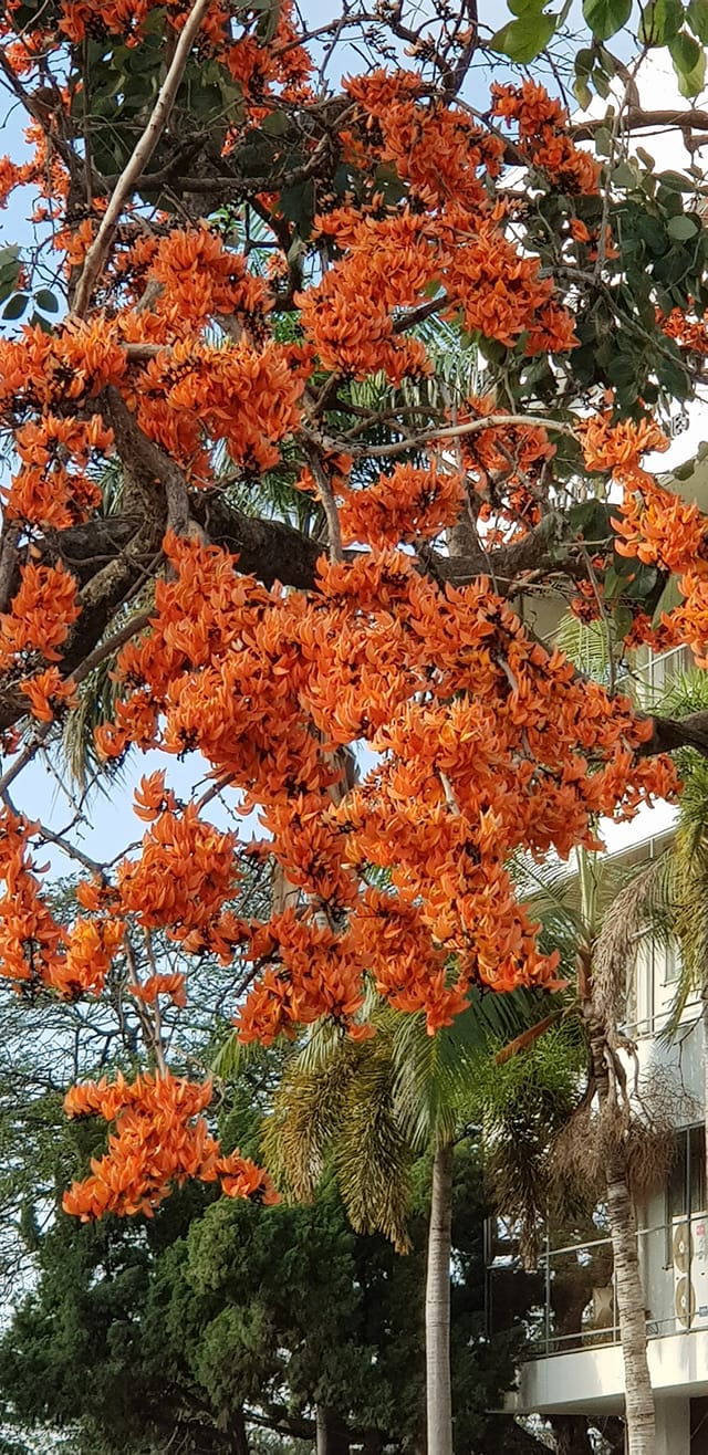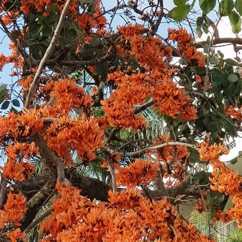 | คำอธิบาย : ทองกวาว คนอิสานเรียก ดอกจาน ดอกไม้หน้าแล้งมีมากทางเหนือและภาคตะวันออกเฉียงเหนือ หลังจากใบร่วงช่วงธค. มค-มี.คจะออกดอกบานเต็มต้นมีสีส้ม สีส้มออกแดง สีเหลืองมีมากแถวอำนาจเจริญ |