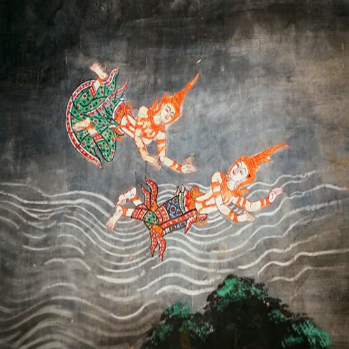 ภาพจิตรกรรมวัดพระยาเจ่ง ได้รับใบอนุญาตภายใต้ ให้เผยแพร่-โดยต้องระบุที่มาแต่ห้ามดัดแปลงและห้ามใช้เพื่อการค้า 3.0 Thailand.