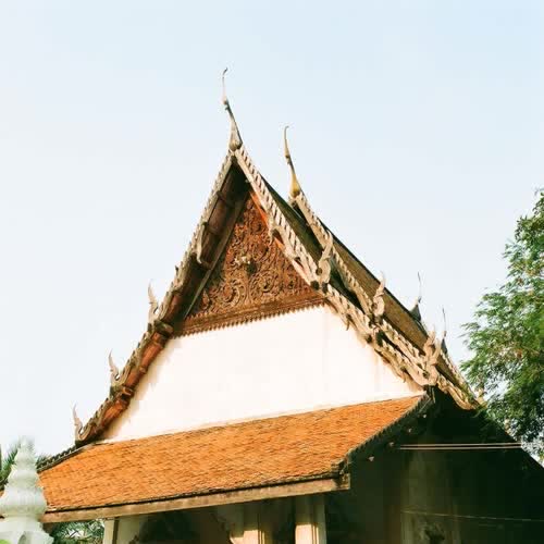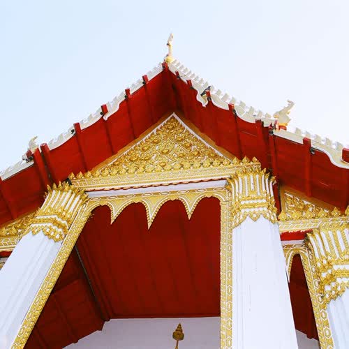| คำอธิบาย : อุโบสถ วัดกลางเกร็ด เป็นอาคารทรงโรงขนาด 5 ห้อง ก่ออิฐถือปูน หลังคาลด 2 ชั้น มีพาไลคลุมชานชาลาด้านหน้าและด้านหลัง หน้าบันจำลองหลักลายกนกก้านขดออกลายหัวโตมีเทพพนมอยู่กลาง หน้าบันปิดทองประดับกระจก เป็นหน้าบันสมัยอยุธยาที่มีความงามที่สุดแห่งหนึ่งในอำเภอปากเกร็ดและในจังหวัดนนทบุรี |