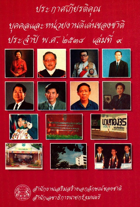 "ประกาศเกียรติคุณบุคคลและหน่วยงานดีเด่นของชาติ ประจำปี พ.ศ. ๒๕๓๘ เล่มที่ ๙".