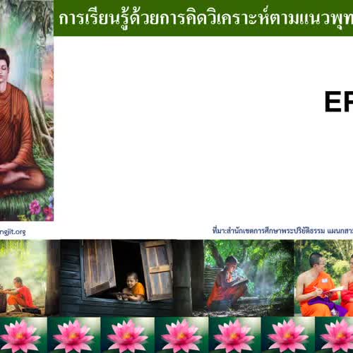 | ชื่อเรื่อง : การเรียนรู้ด้วยการคิดวิเคราะห์ตามแนวพุทธธรรม ตอนที่ 1 การพัฒนาเด็กให้เป็นคนดีและคนเก่ง |