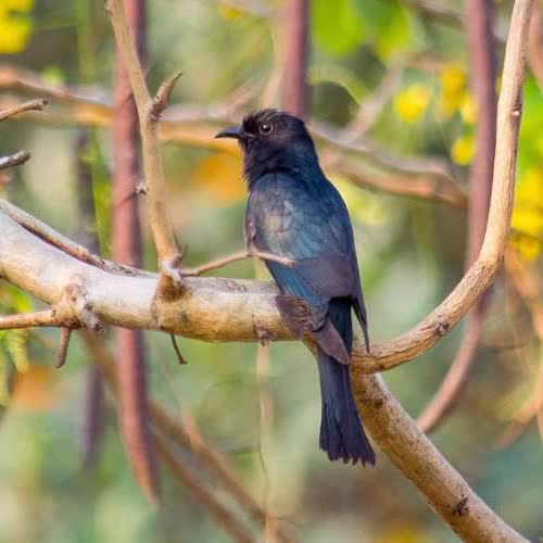 | คำอธิบาย : นกคัคคูแซงแซว Drongo Cuckooขนดำเป็นมันหางเว้าตื้น ก้นและหางด้านล่างมีแถบขวางสีขาว ท้ายทอยมีแถบขาวเล็กๆ อาศัยในพื้นที่ภาคเหนือตอนล่างและล้านนาตะวันออก |