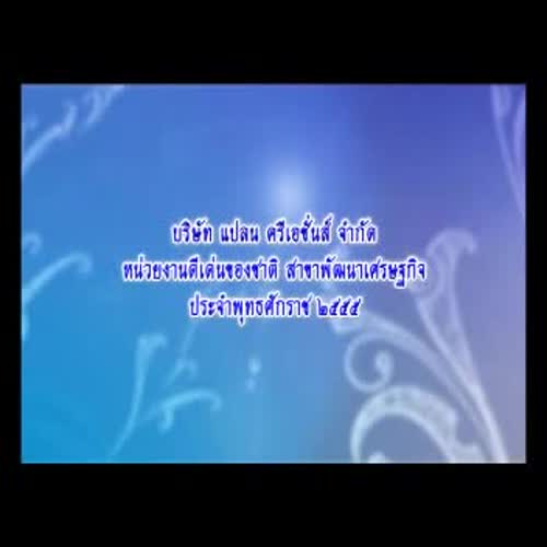 | ชื่อเรื่อง : บริษัท แปลน ครีเอชั่นส์ จำกัด หน่วยงานดีเด่นของชาติ สาขาพัฒนาเศรษฐกิจ ประจำพุทธศักราช ๒๕๕๕ |