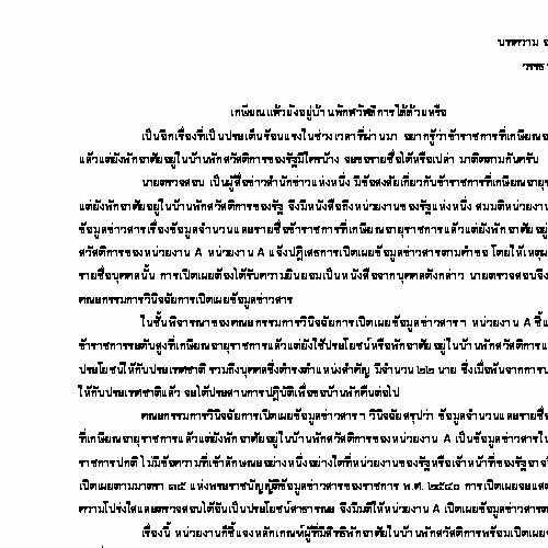 | คำอธิบาย : บทความ ความรู้เกี่ยวกับพระราชบัญญัติข่าวสารของราชการ พ.ศ.2540 เปิดเผยเป็นหลัก ปกปิดเป็นข้อยกเว้น |