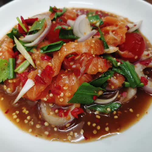 | คำสำคัญ : อาหารประเภทยำ, ยำ, แซลมอน, ยำแซลมอน, อาหาร |