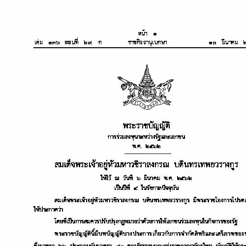 | คำสำคัญ : รัฐ, เอกชน, พระราชบัญญัติ, ราชกิจจานุเบกษา, พ.ร.บ., พระราชบัญญัติการร่วมลงทุนระหว่างรัฐและเอกชน |