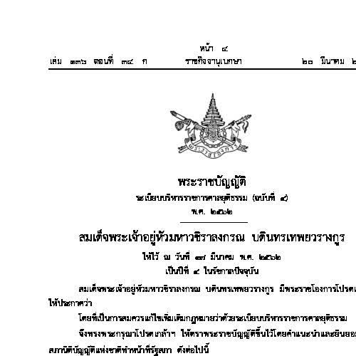 | คำสำคัญ : พระราชบัญญัติระเบียบบริหารราชการศาลยุติธรรม, พระราชบัญญัติ, ราชกิจจานุเบกษา, พ.ร.บ., ศาลยุติธรรม, ราชการ |