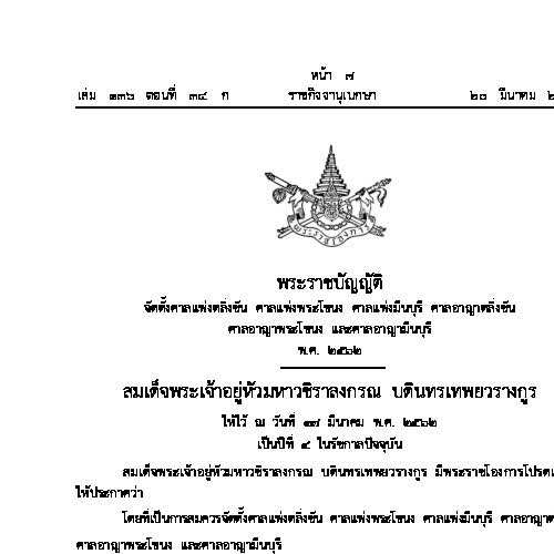 | คำสำคัญ : พ.ร.บ., ศาลแพ่ง, พระราชบัญญัติ, ราชกิจจานุเบกษา, พระราชบัญญัติจัดตั้งศาลแพ่งตลิ่งชัน ศาลแพ่งพระโขนง ศาลแพ่งมีนบุรี ศาลอาญาตลิ่งชัน ศาลอาญาพระโขนง และศาลอาญามีนบุรี |