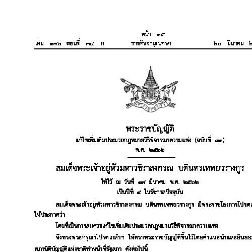 | คำสำคัญ : ราชกิจจานุเบกษา, พ.ร.บ., ความแพ่ง, พระราชบัญญัติแก้ไขเพิ่มเติมประมวลกฎหมายวิธีพิจารณาความแพ่ง, กฎหมาย, พระราชบัญญัติ, ประมวล |