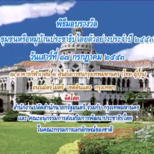 (2564). พิธีมอบรางวัล ชุมชนหรือหมู่บ้านประชาธิปไตยตัวอย่างประจำปี ๒๕๕๓ (๑),