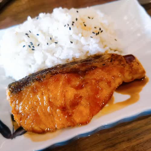 | ชื่อเรื่อง : ข้าวหน้าปลาแซลมอนย่าง |