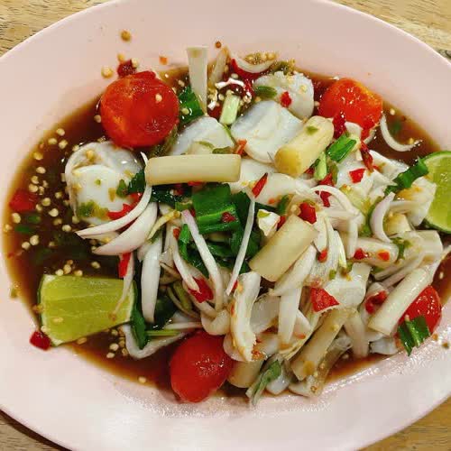 | คำสำคัญ : อาหารประเภทยำ, ยำ, ยำไหลบัวปลาหมึก |