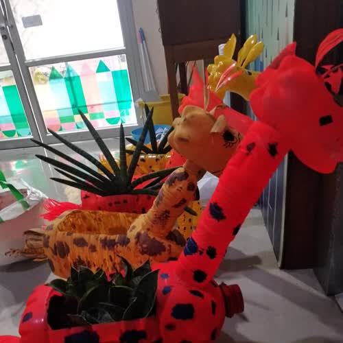 | คำสำคัญ : ผลงานนักเรียนโรงเรียนวัดช่องนนทรี, งานศิลปะ, ยีราฟรักษ์โลก, ศิลปะ, การเรียนรู้, ไอเดีย, Recycle, งานศิลป์จากขวดพลาสติก, ความคิดสร้างสรรค์, ยีราฟจากขวดน้ำพลาสติก |