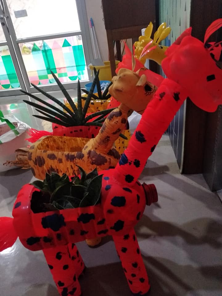 | คำอธิบาย : ยีราฟรักษ์โลก ยีราฟจากขวดน้ำพลาสติก ผลงานนักเรียนโรงเรียนวัดช่องนนทรี |