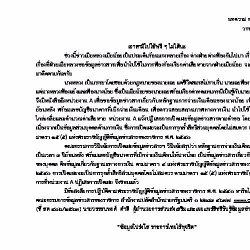 | คำอธิบาย : บทความ ความรู้เกี่ยวกับพระราชบัญญัติข่าวสารของราชการ พ.ศ.2540 เปิดเผยเป็นหลัก ปกปิดเป็นข้อยกเว้น |