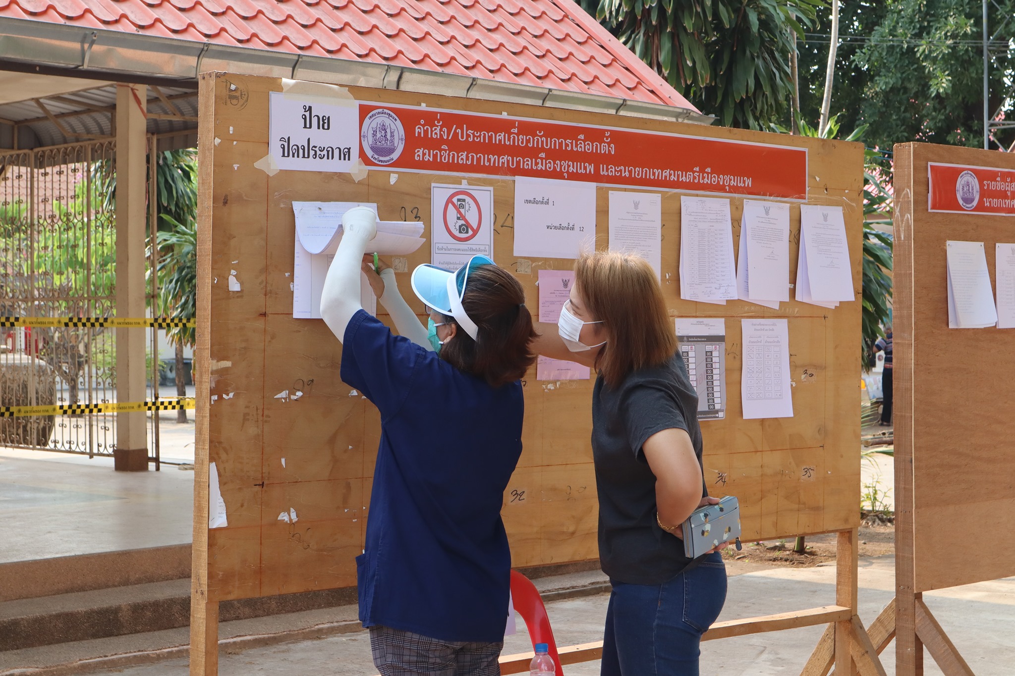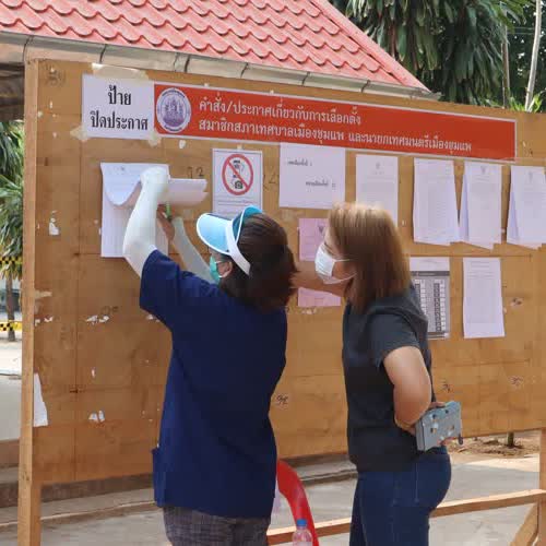 | คำอธิบาย : วันที่ 28 มีนาคม 2564 นางสุภาวดี ศรีสุขวัฒน์ นายอำเภอชุมแพ นายไพศาล วงษ์ซีวะสกุล ปลัดอาวุโส นายอดุลย์ ป้องกัน ท้องถิ่นอำเภอชุมแพ พ.ต.ท.ปรัชญามาศ ไชยสุระ รอง ผกก.สส.สภ.ชุมแพ นายณัฐภูมิ นนทสิริกุล ปลัดเทศบาลเมืองชุมแพ ปฎิบัติหน้าที่นายกเทศมนตรีเมืองชุมแพ ในฐานะผู้อำนวยการเลือกตั้งประจำเทศบาลเมืองชุมแพ พร้อมด้วยหัวหน้าส่วนการงานเทศบาลเมืองชุมแพที่ได้รับมอบหมาย ออกตรวจเยี่ยม และให้คำแนะแก่คณะกรรมการประจำหน่วยเลือกตั้งที่ออกปฏิบัติหน้าที่ในการจัดหน่วยเลือกตั้งสมาชิกสภาเทศบาลและนายกเทศมนตรีเมืองชุมแพ โดยในช่วงเช้ามีประชาชนให้ความสนใจออกมาใช้สิทธิในการเลือกตั้งฯ อย่างคึกคัก |
