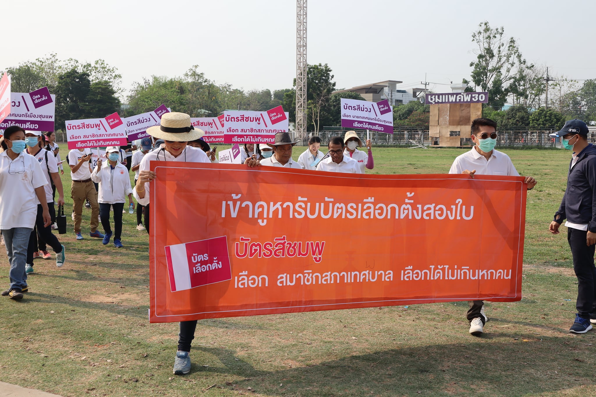 | คำอธิบาย : เช้าวันที่ 26 มีนาคม 2564 นายณัฐภูมิ นนทสิริกุล ปลัดเทศบาลเมืองชุมแพ ปฏิบัติหน้าที่นายกเทศมนตรีเมืองชุมแพ และผู้อำนวยการการเลือกตั้งประจำเทศบาลเมืองชุมแพ นำหัวหน้าส่วนการงาน พนักงานเทศบาลเมืองชุมแพ และนักเรียนโรงเรียนเทศบาล 1 (สำนักงานสลากกินแบ่งรัฐบาลอุปถัมภ์) ออกเดินรณรงค์เชิญชวนให้ประชาชนไปใช้สิทธิเลือกตั้งสมาชิกสภาเทศบาลและนายกเทศมนตรีเมืองชุมแพ ซึ่งจะมีขึ้นในวันอาทิตย์ ที่ 28 มีนาคม 2564 |