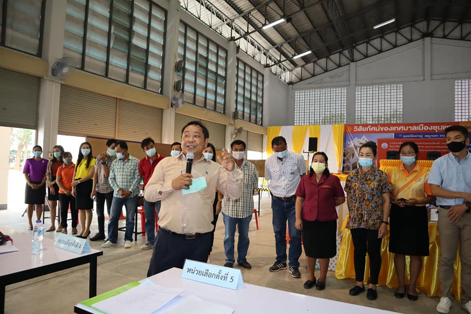 | คำอธิบาย : วันที่ 25 มีนาคม 2564 นายณัฐภูมิ นนทสิริกุล ปลัดเทศบาลเมืองชุมแพ ปฏิบัติหน้าที่นายกเทศมนตรีเมืองชุมแพ และผู้อำนวยการการเลือกตั้งประจำเทศบาลเมืองชุมแพ เป็นประธานการอบรมเกี่ยวกับการปฏิบัติหน้าที่การเลือกตั้งแก่คณะกรรมการประจำหน่วยเลือกตั้งและเจ้าหน้าที่รักษาความปลอดภัยประจำที่เลือกตั้ง ของเขตเลือกตั้งที่ 3 ในการเลือกตั้งสมาชิกสภาเทศบาลและนายกเทศมนตรีเมืองชุมแพ เพื่อให้ปฏิบัติได้ถูกต้องตามกฎหมาย ซึ่งจะมีการเลือกตั้งฯ ในวันอาทิตย์ที่ 28 มีนาคม 2564 การอบรมจัดขึ้น ณ หอประชุมอเนกประสงค์ เทศบาลเมืองชุมแพ |