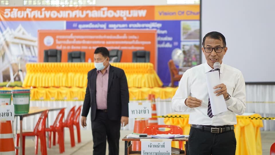| คำอธิบาย : เมื่อวันที่ 23 มีนาคม 2564 นายณัฐภูมิ นนทสิริกุล ปลัดเทศบาลเมืองชุมแพ ปฏิบัติหน้าที่นายกเทศมนตรีเมืองชุมแพ และผู้อำนวยการการเลือกตั้งประจำเทศบาลเมืองชุมแพ เป็นประธานการอบรมเกี่ยวกับการปฏิบัติหน้าที่การเลือกตั้งแก่คณะกรรมการประจำหน่วยเลือกตั้งและเจ้าหน้าที่รักษาความปลอดภัยประจำที่เลือกตั้ง ของเขตเลือกตั้งที่ 1 ในการเลือกตั้งสมาชิกสภาเทศบาลและนายกเทศมนตรีเมืองชุมแพ เพื่อให้ปฏิบัติได้ถูกต้องตามกฎหมาย ซึ่งจะมีการเลือกตั้งฯ ในวันอาทิตย์ที่ 28 มีนาคม 2564 การอบรมจัดขึ้น ณ หอประชุมอเนกประสงค์ เทศบาลเมืองชุมแพ |