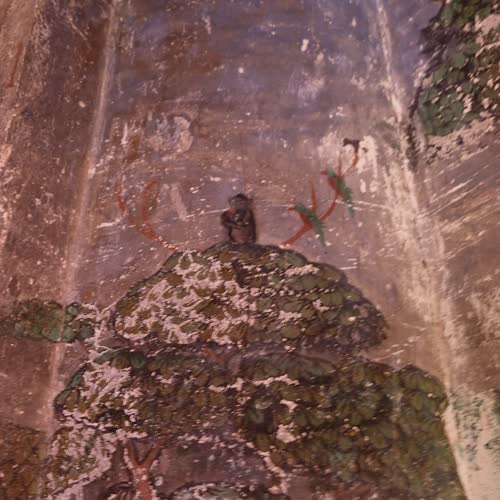 | คำอธิบาย : ภายในพระอุโบสถประดิษฐานพระพุทธรูปปูนปั้นลงรักปิดทอง ปางมารวิชัยบนฐานชุกชีก่ออิฐถือปูนเป็นฐานปัทม์สูง ด้านข้างทั้งสองด้านมีพระอัครสาวกปูนปั้น ลงรักปิดทอง ประทับยืนพนมมือ เพดานไม้มีลายดวงดาราปิดทองล่องชาด ที่ผนังพระอุโบสถมีภาพจิตรกรรมฝาผนังทุกด้านลักษณะของภาพแบ่งออกเป็น 4 แถว ตั้งแต่เหนือกรอบหน้าต่างขึ้นไปจนจรดเพดานเป็นภาพพระอดีตพุทธประทับนั่งขัดสมาธิราบ แสดงปางสมาธิ ต่อเนื่องกันเป็นแถวมีลายดอกไม้ร่วงประดับ จำนวน 3 แถวซ้อนกัน โดยมีแถบลายประจำยามเถาก้ามขดคั่นในแต่ละแถว ห้องภาพระหว่างช่องหน้าต่างถึงพื้นเป็นภาพอสุภกรรมฐาน พระภิกษุชักผ้าบังสกุล ภาพพระมาลัยและทิวทัศน์ สัตว์ ต้นไม้ โขดหิน และธรรมชาติอย่างอื่นประกอบ จากลักษณะทางศิลปกรรมพระอุโบสถหลังนี้น่าจะสร้างขึ้นในสมัยรัชกาลที่ 3-4 แห่งกรุงรัตนโกสินทร์ |