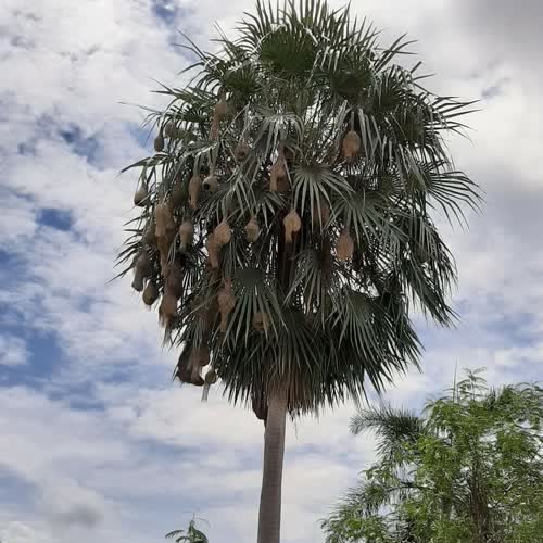 | คำอธิบาย : รังนกกระจอกฟ้าบนต้นไม้ ต้นตาล |