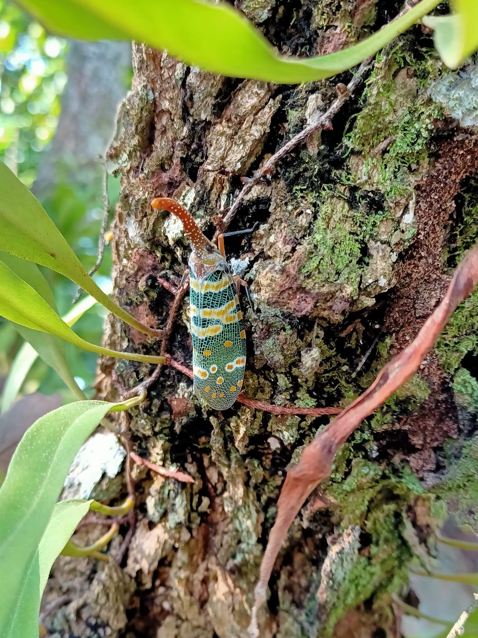 | คำอธิบาย : จักจั่นงวง หรือ ด้วงงวงช้าง เป็นแมลงที่อยู่ในวงศ์ Fulgoridae มีปีกหุบอยู่ข้างลำตัว มีสีสันโดดเด่นสะดุดตา ปีกจะเป็นเยื่อบาง ๆ มีลายขวางที่ปีกเป็นจำนวนมาก มีหลายชนิด บางชนิดจะมีงวงยื่นออกมาหรือบางชนิดก็ไม่มีให้เห็นเลย มักจะออกมาเผยโฉมให้เห็นในฤดูร้อนและวางไข่ในฤดูหนาว เพื่อดูดกินน้ำเลี้ยงจากรากพืชเป็นอาหาร |