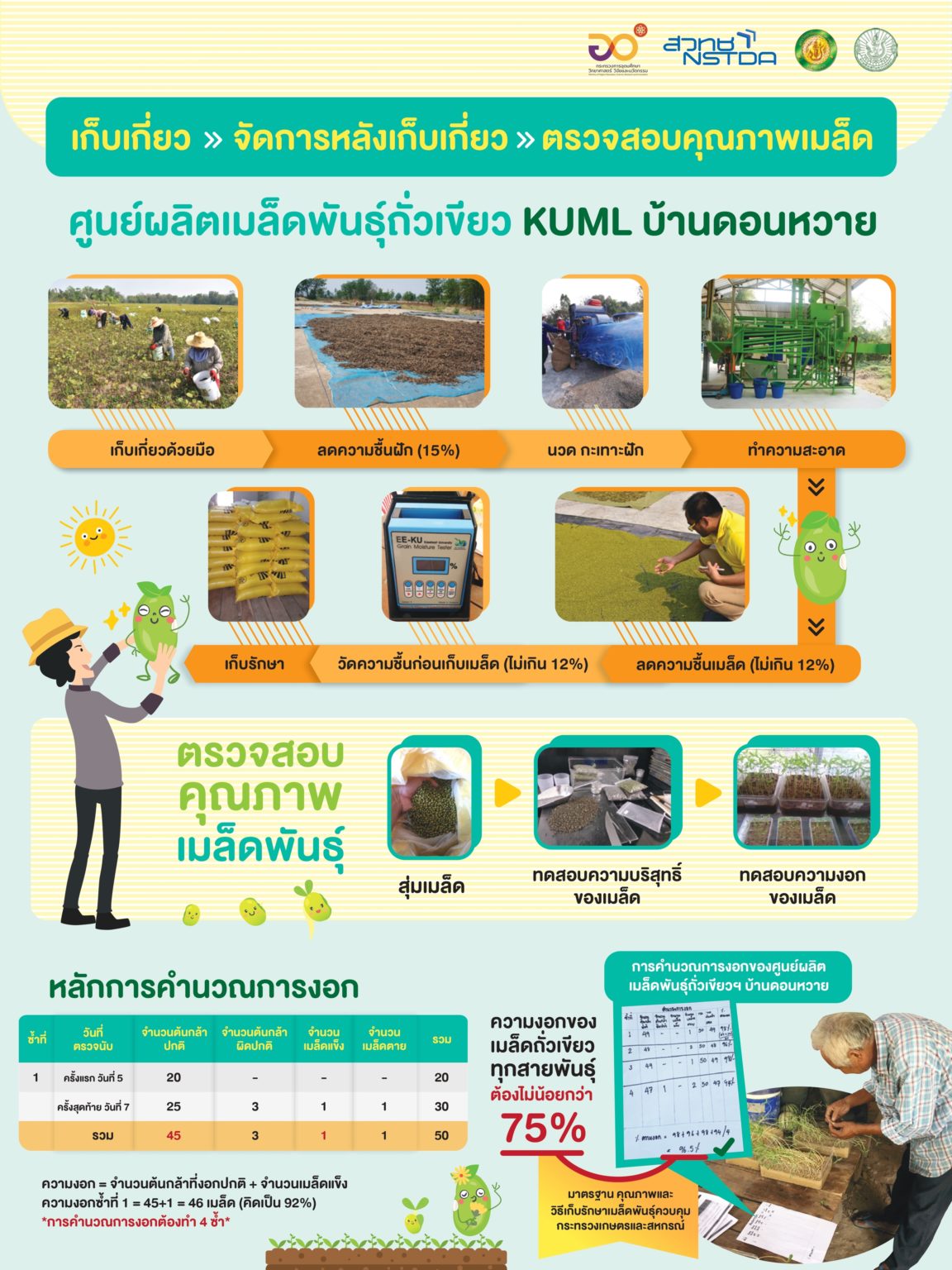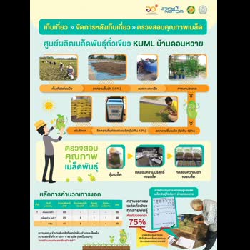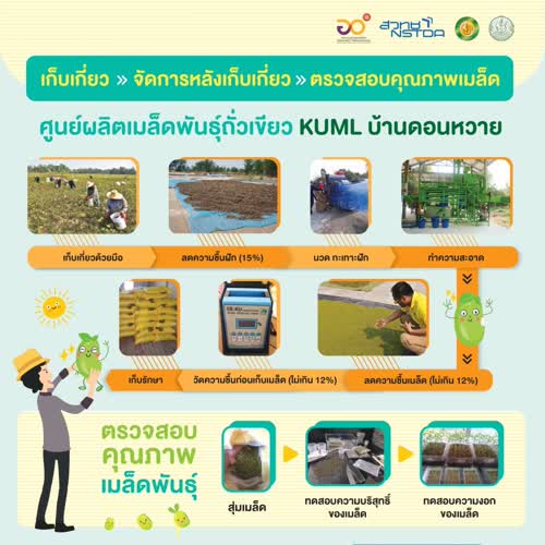 (2564). "การจัดการหลังการเก็บเกี่ยวเมล็ดพันธุ์ถั่วเขียว KUML บ้านดอนหวาย".
