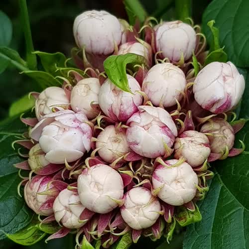 | คำอธิบาย : นางแย้มไม้พุ่มลำต้นเปราะหักง่าย ชอบดินชุ่มขยายพันธุ์ง่ายรากไปถึงตรงไหนก็แตกต้นอ่อนได้ ดอกช่อใหญ่และมีดอกเล็กๆอัดกันในช่อออกทั้งปี ดอกมีกลิ่นหอมดอกเล็กๆจะทะยอยบาน ตัดต้นออกถ้ายังมีต้นตอและรากอยู่ก็จะงอกอีก |