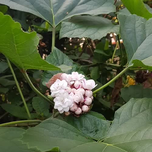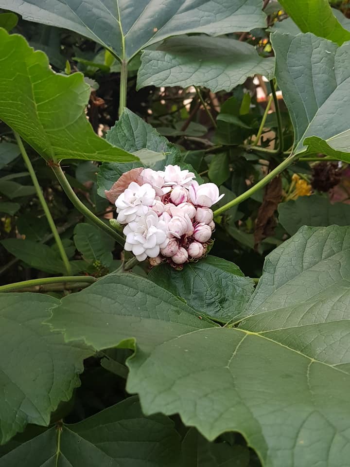 | คำอธิบาย : นางแย้มไม้พุ่มลำต้นเปราะหักง่าย ชอบดินชุ่มขยายพันธุ์ง่ายรากไปถึงตรงไหนก็แตกต้นอ่อนได้ ดอกช่อใหญ่และมีดอกเล็กๆอัดกันในช่อออกทั้งปี ดอกมีกลิ่นหอมดอกเล็กๆจะทะยอยบาน ตัดต้นออกถ้ายังมีต้นตอและรากอยู่ก็จะงอกอีก |